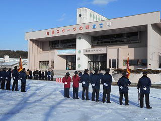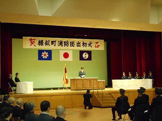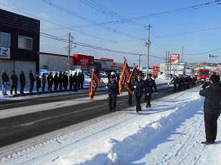 各町の消防出初式(観閲式・式典)に参加しました!写真は、様似町で行われた出初式のものです。