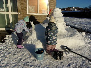 「駐在所前に雪像完成!」