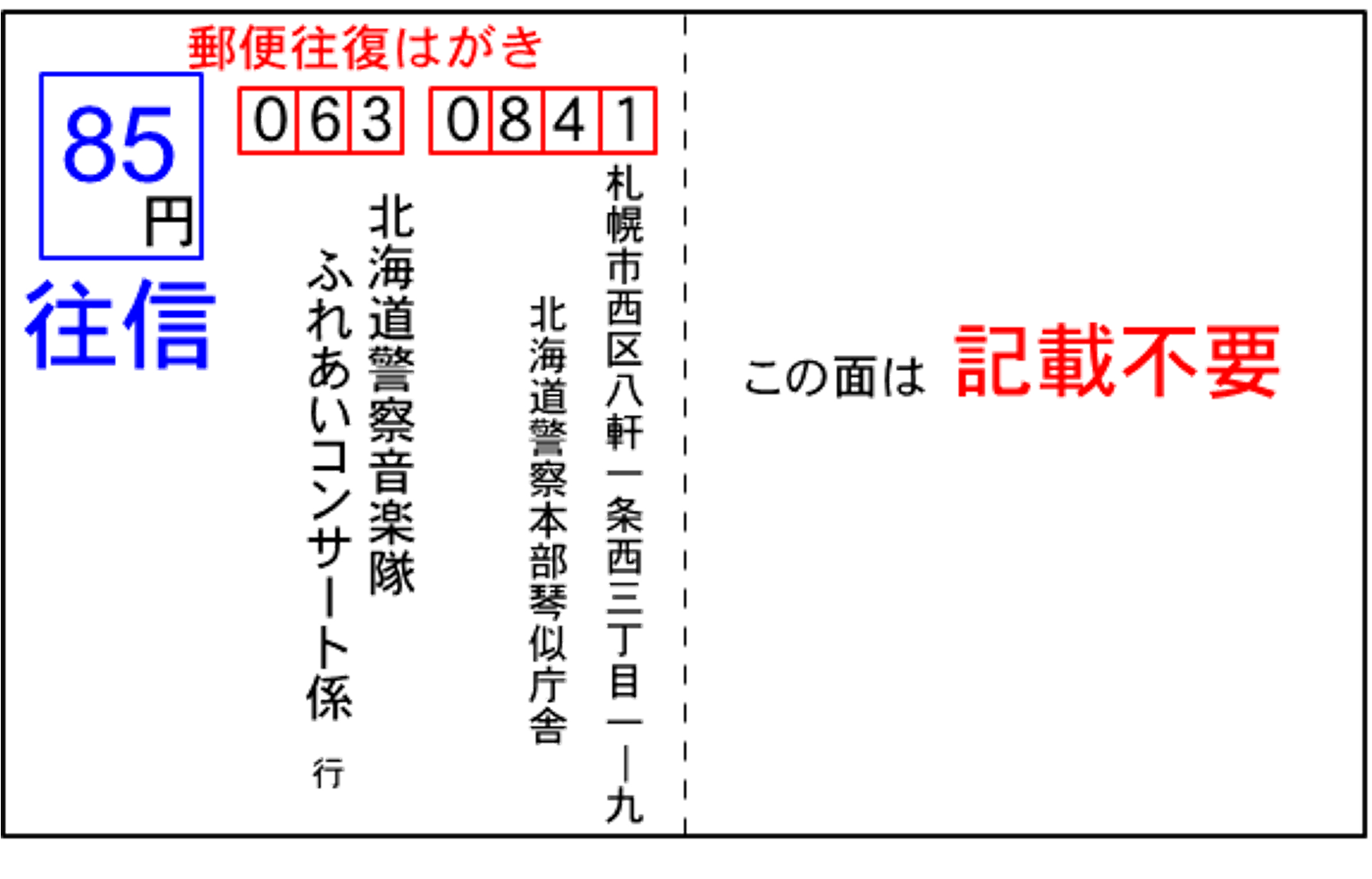 ※ 往復はがきは下記の記載例のとおりに記入してください。